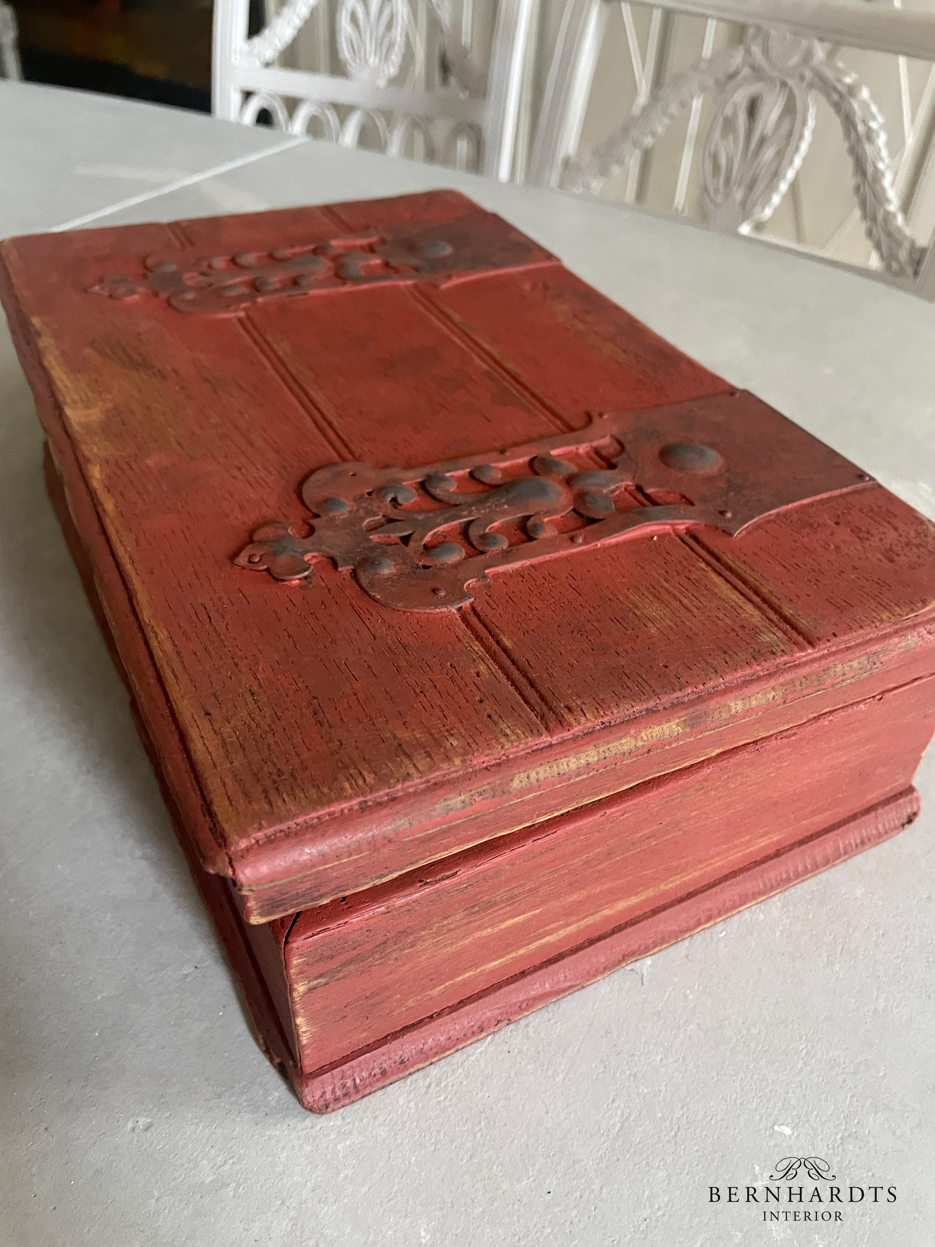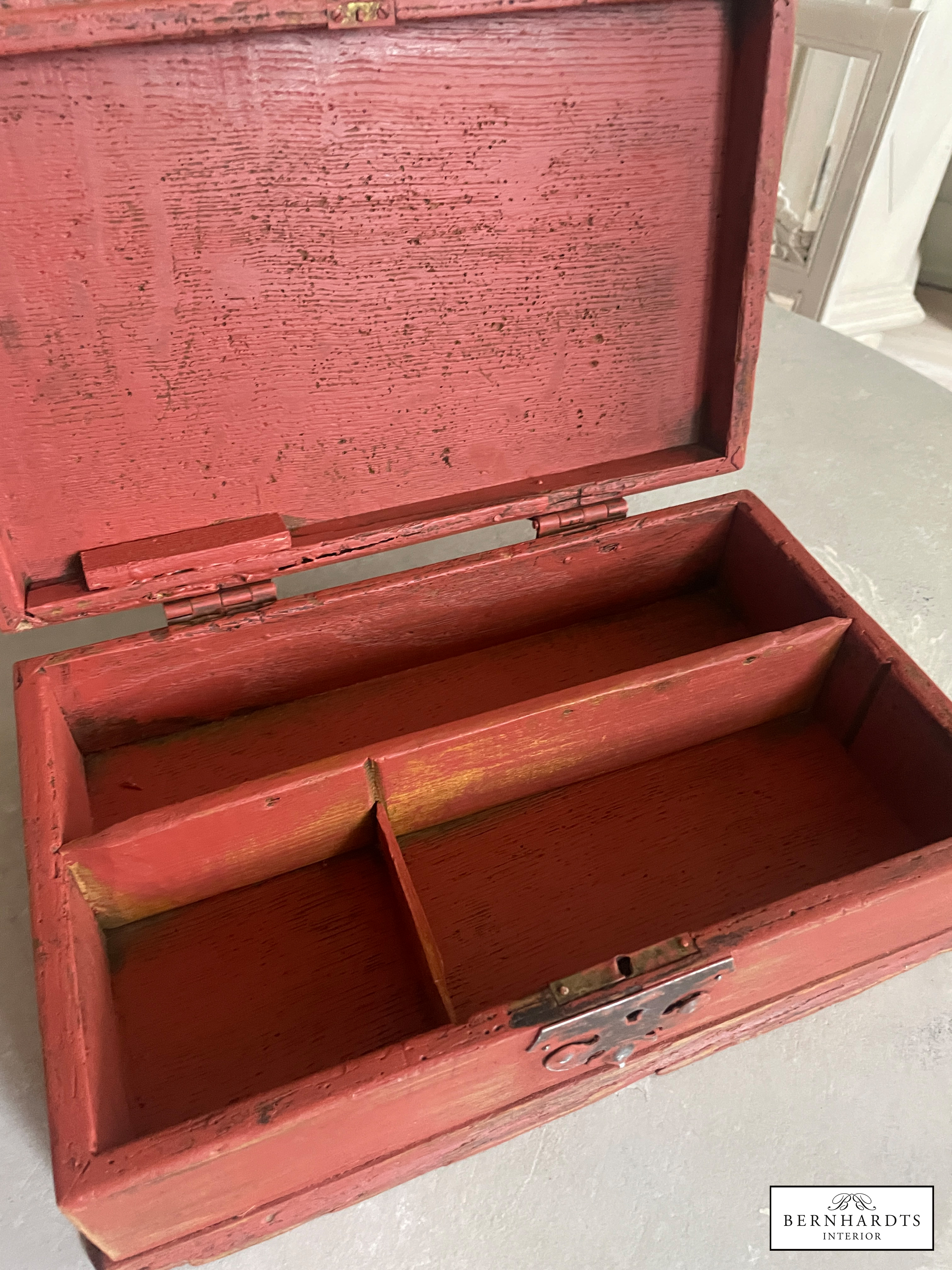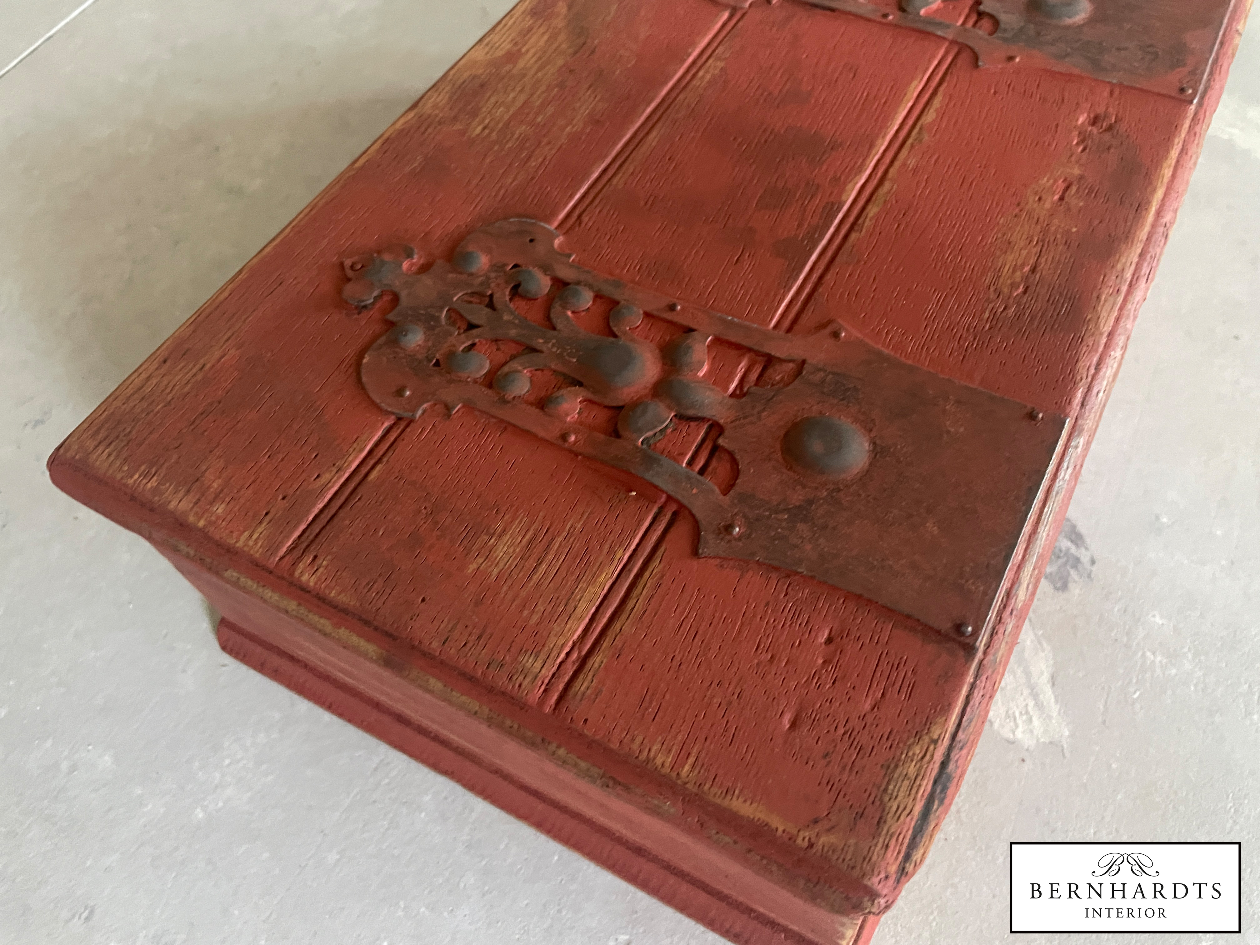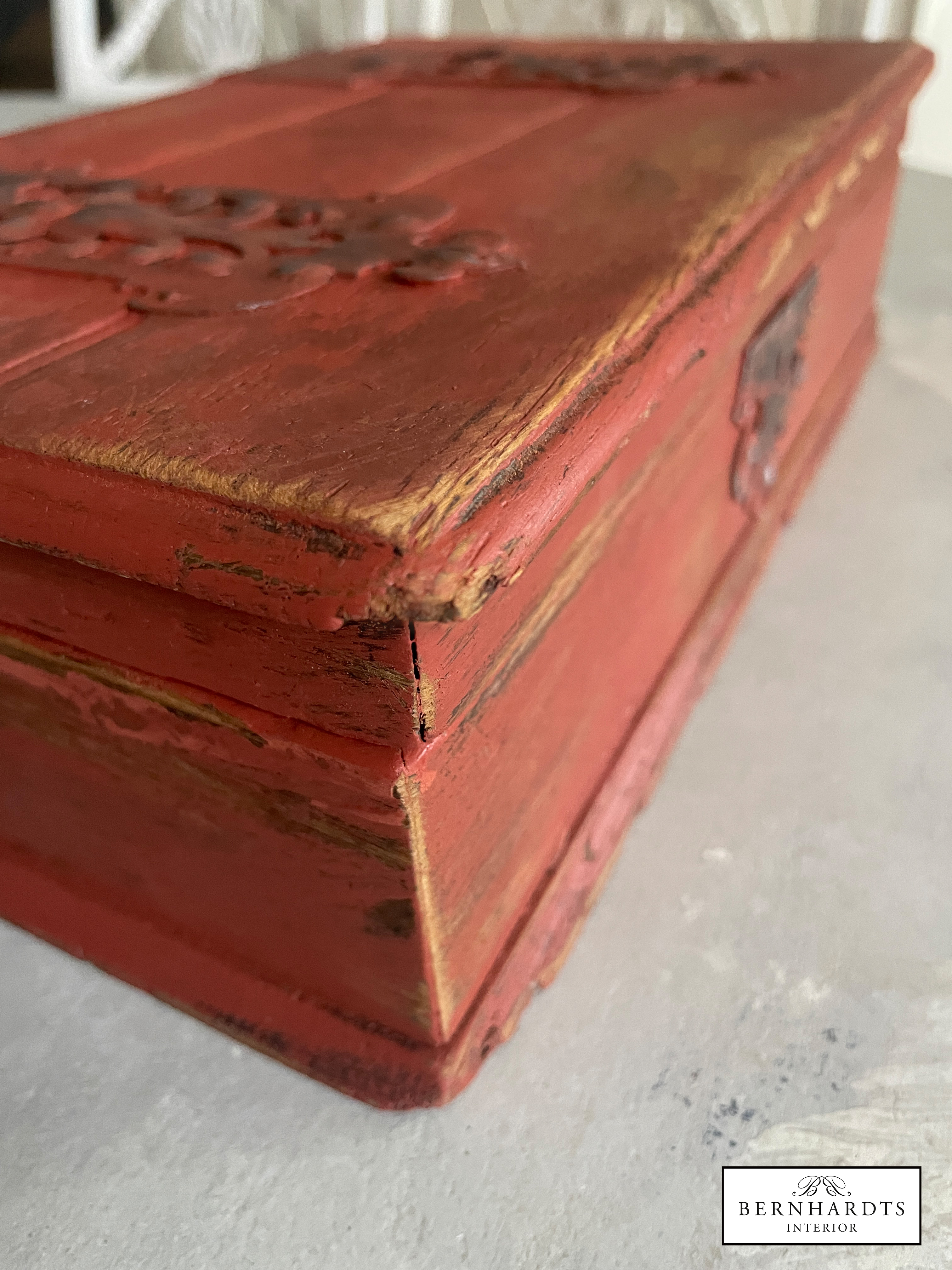 Farblich gefasste Barockschatulle um 1800. Die Schatulle befindet sich im Originalzustand und wurde in unserer Werkastatt farblich gefasst. Schlüssel ist nicht vorhanden. Beschläge sind original. Diese dekorative Schatulle ist vielseitig einsetzbar und dekoriert jeden Wohnraum.