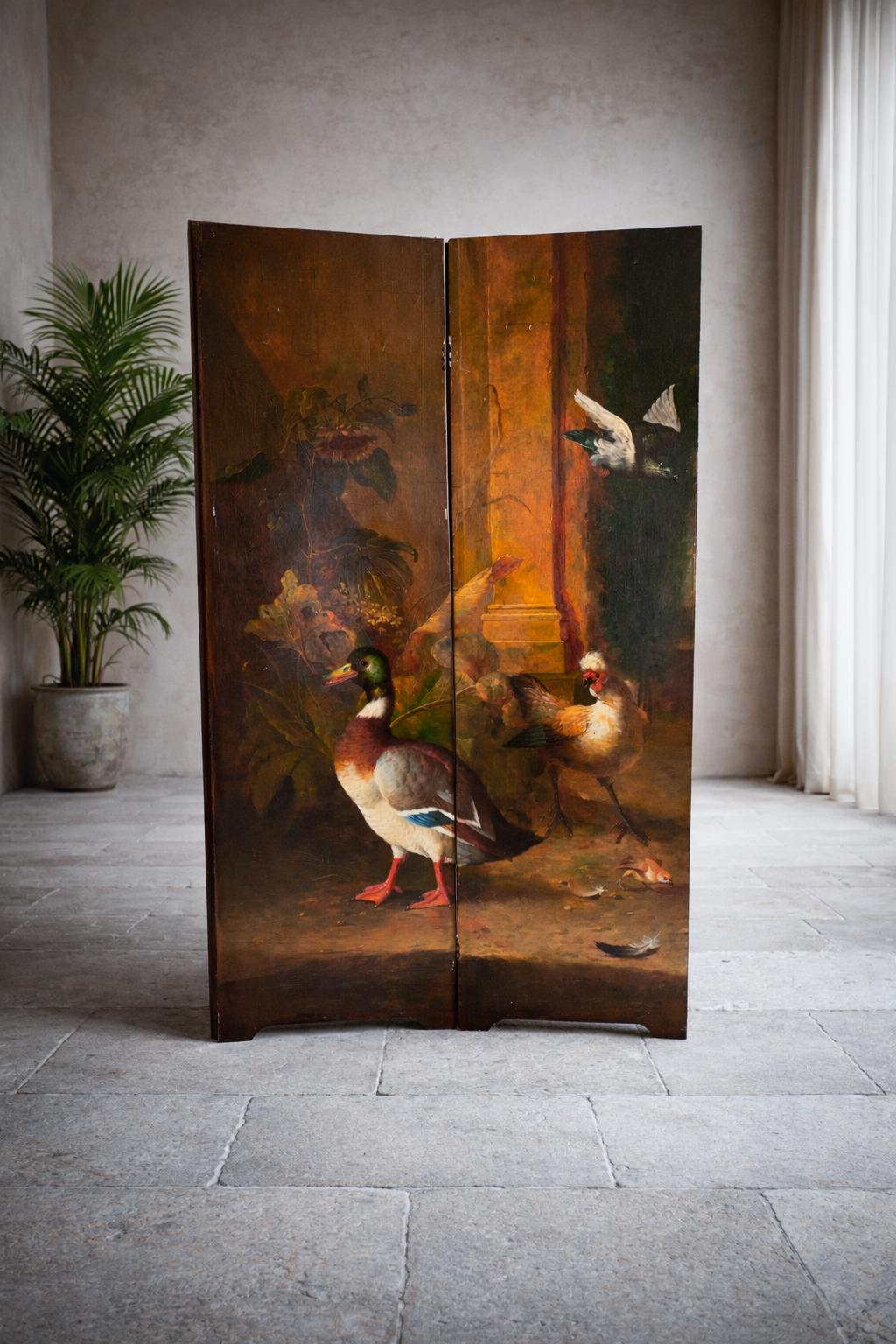Französischer Salon- Paravent mit Tiermalerei, Louis Philippe, Paris um 1830-1860.