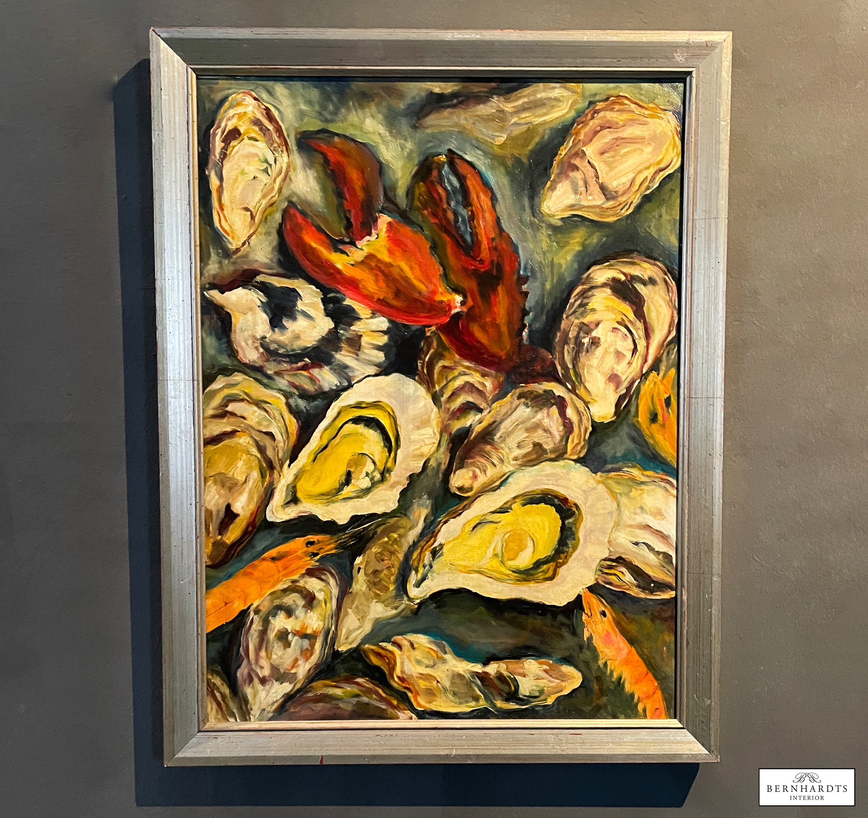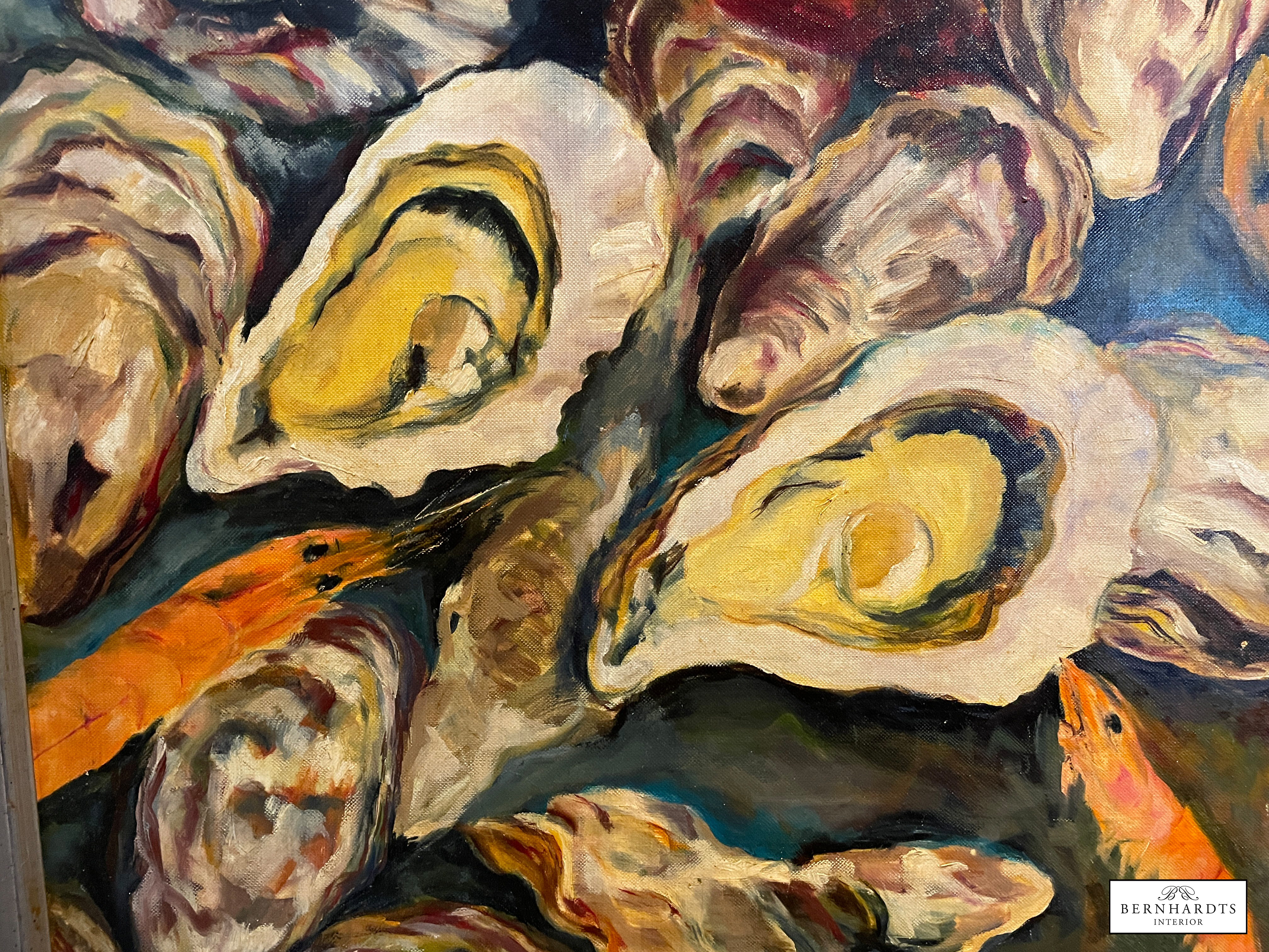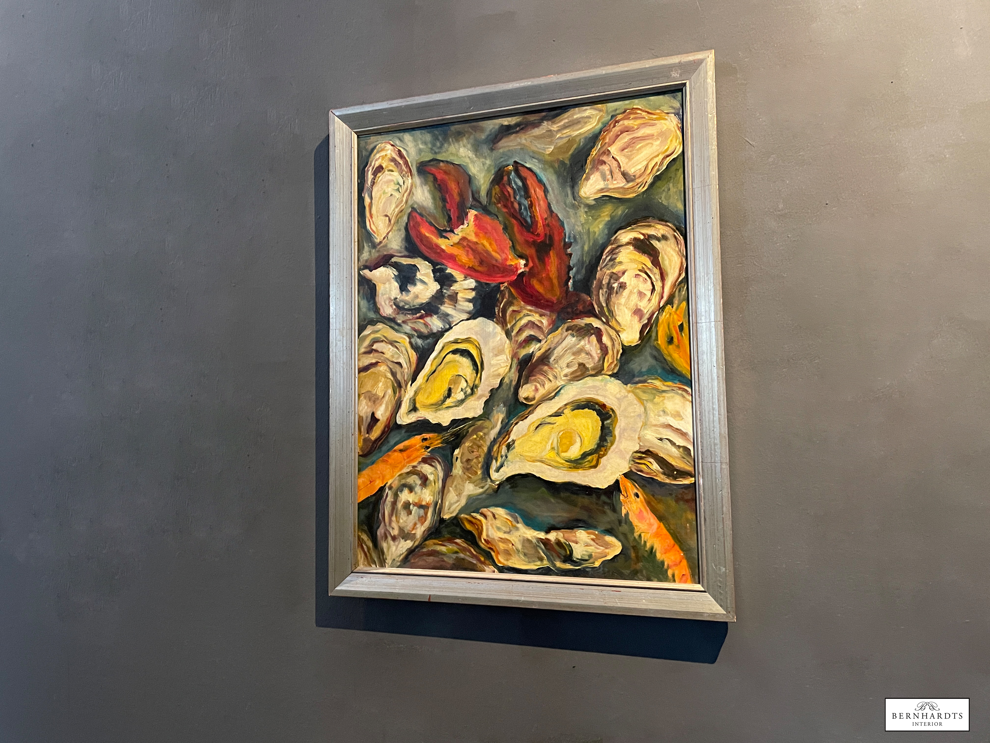 Antikes, meisterhaft gemaltes Ölbild auf Karton mit farbenfrohen Meeresdelikatessen. Der Künstler ist unbekannt und das Bild ist nicht signiert. Die Farbenpracht spricht für sich.