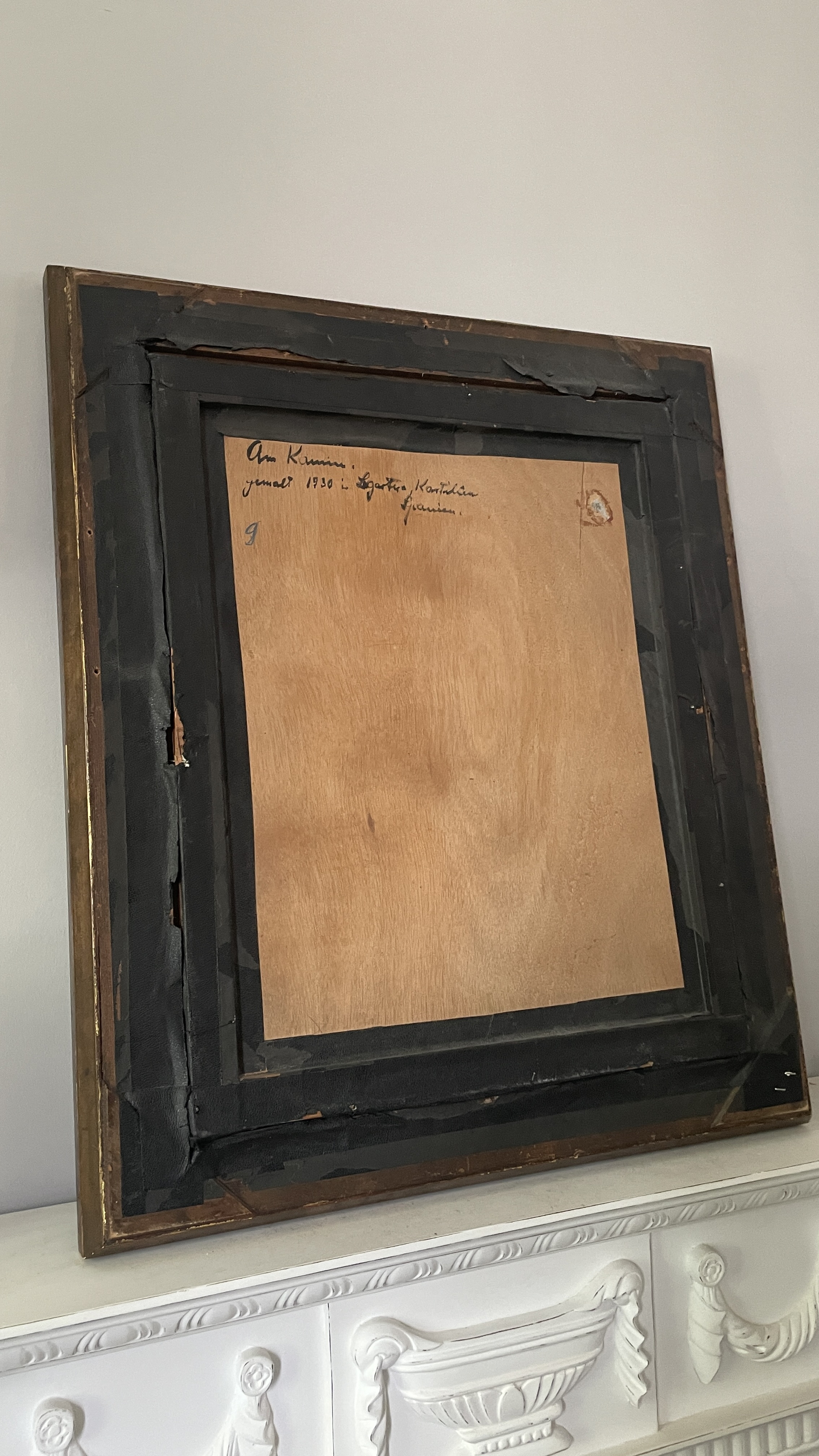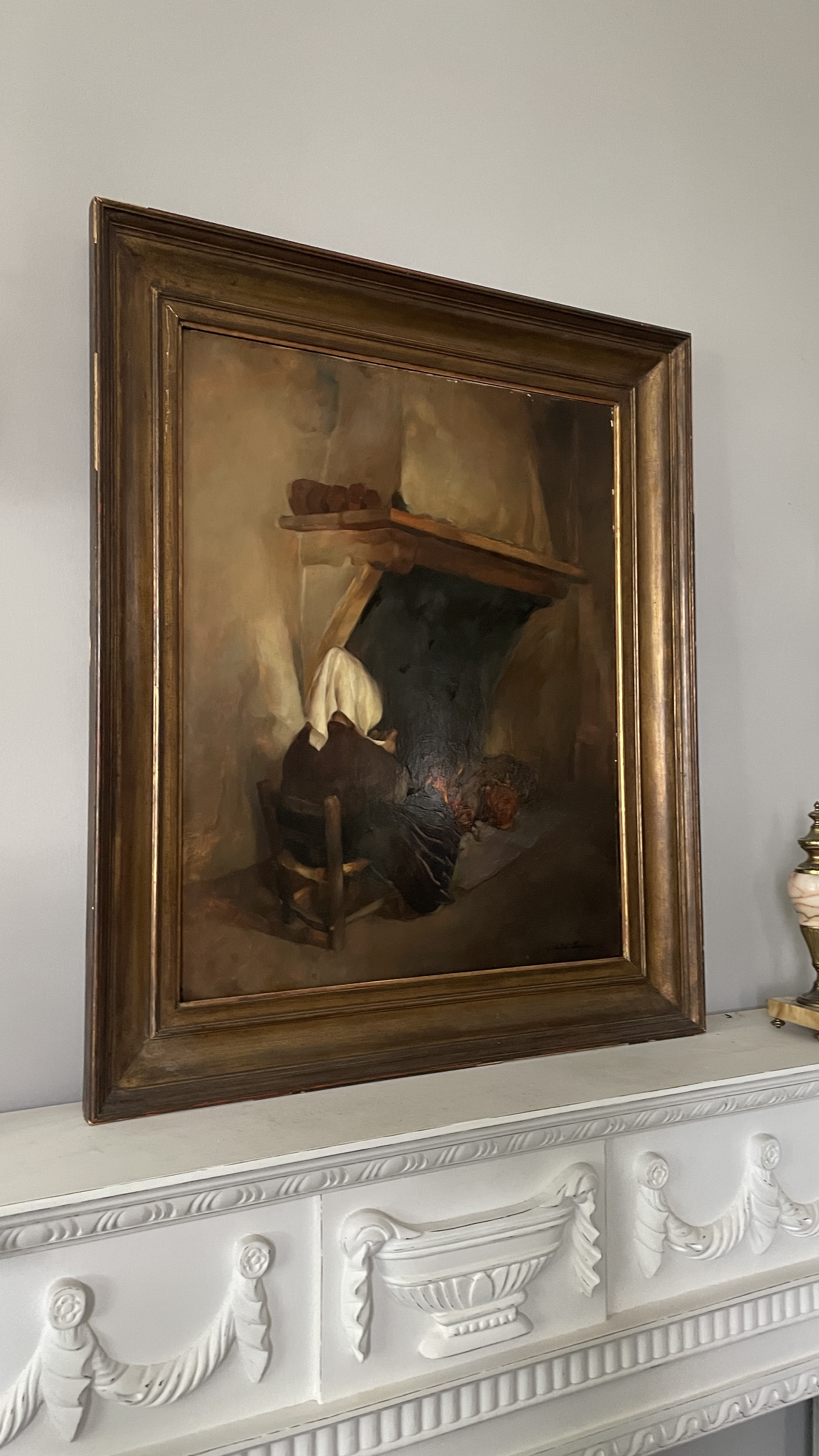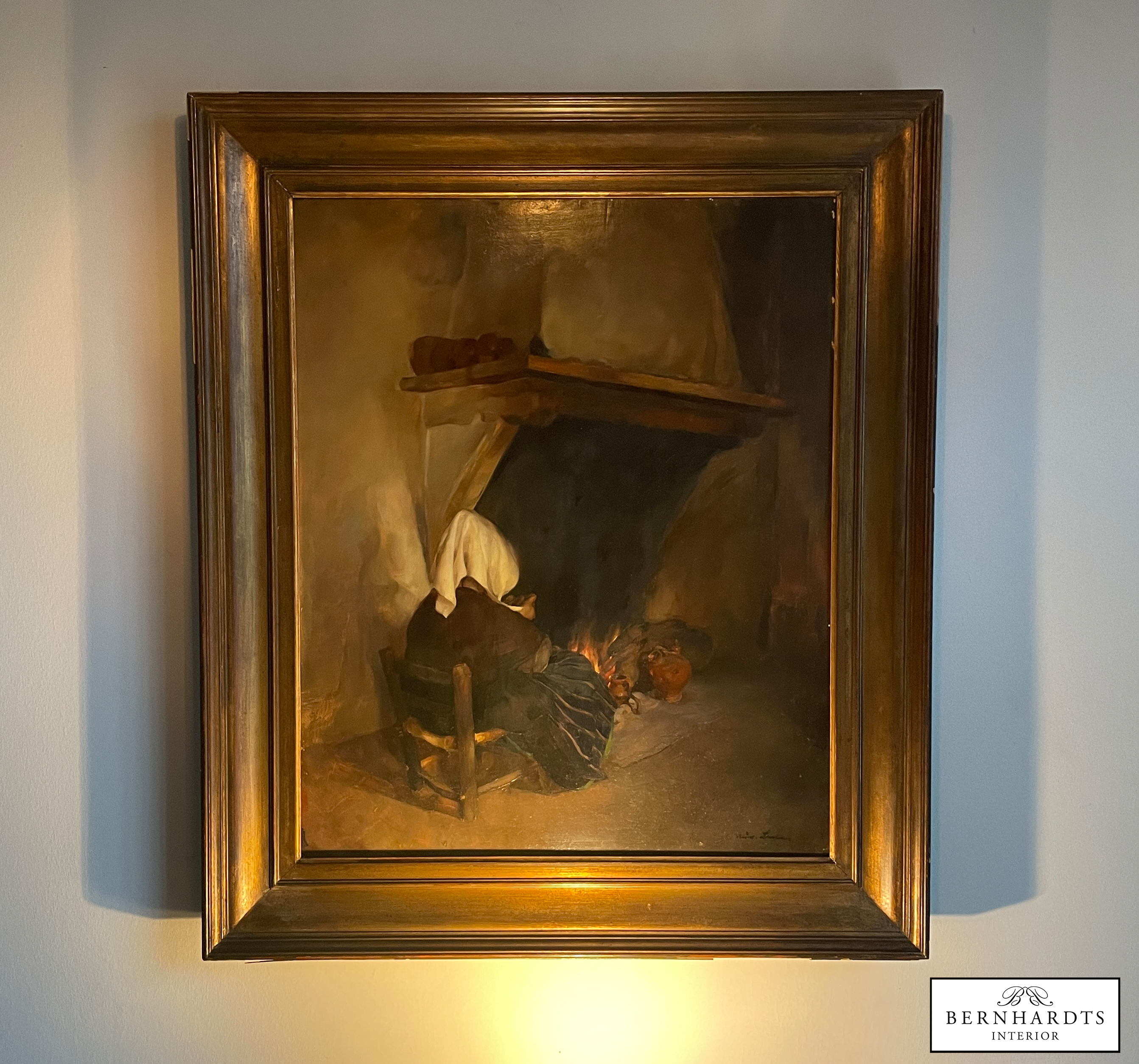 Am Kamin, meisterhaft gemaltes Ölgemälde aus Spanien Legartera Kastilien 1930. Das Bild ist gut erhalten und es handelt sich um ein Einzelwerk. Das Bild ist unleserlich signiert. Tiefgründig und anspruchsvolle Malerei lässt aber auf einen sehr guten Maler schliessen. Der Rahmen ist vergoldet und in einmen altersgerechten Zustand mit kaum sichtbaren Fehlern.