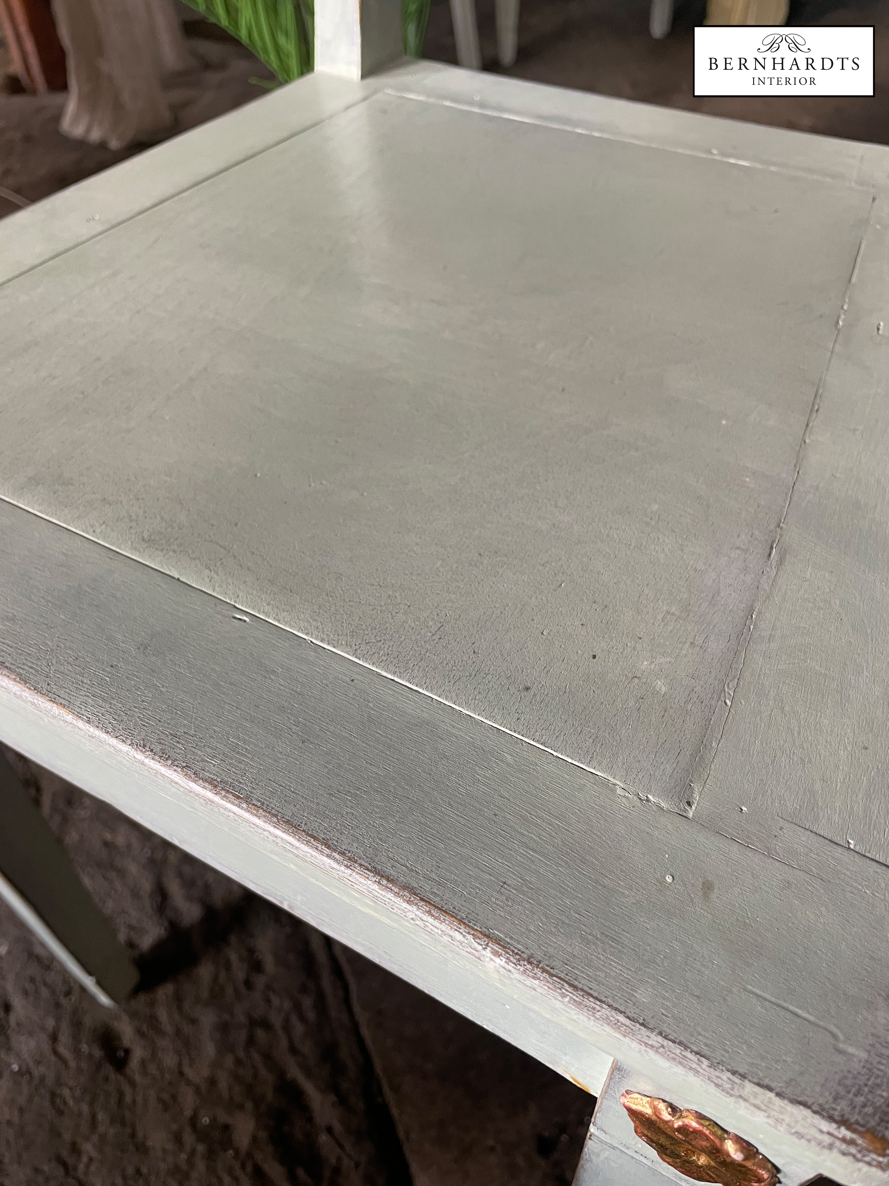 Gefasst in der charaktervollen Nuance Mizzlegreen, einem subtil gebrochenen Grau-Grün mit nebeliger Tiefe, entfalten die Stühle eine außergewöhnlich harmonische Präsenz. Der pudrige, matte Farbauftrag verleiht der Oberfläche eine weiche Lichtwirkung und unterstreicht den authentischen nordischen Charakter.