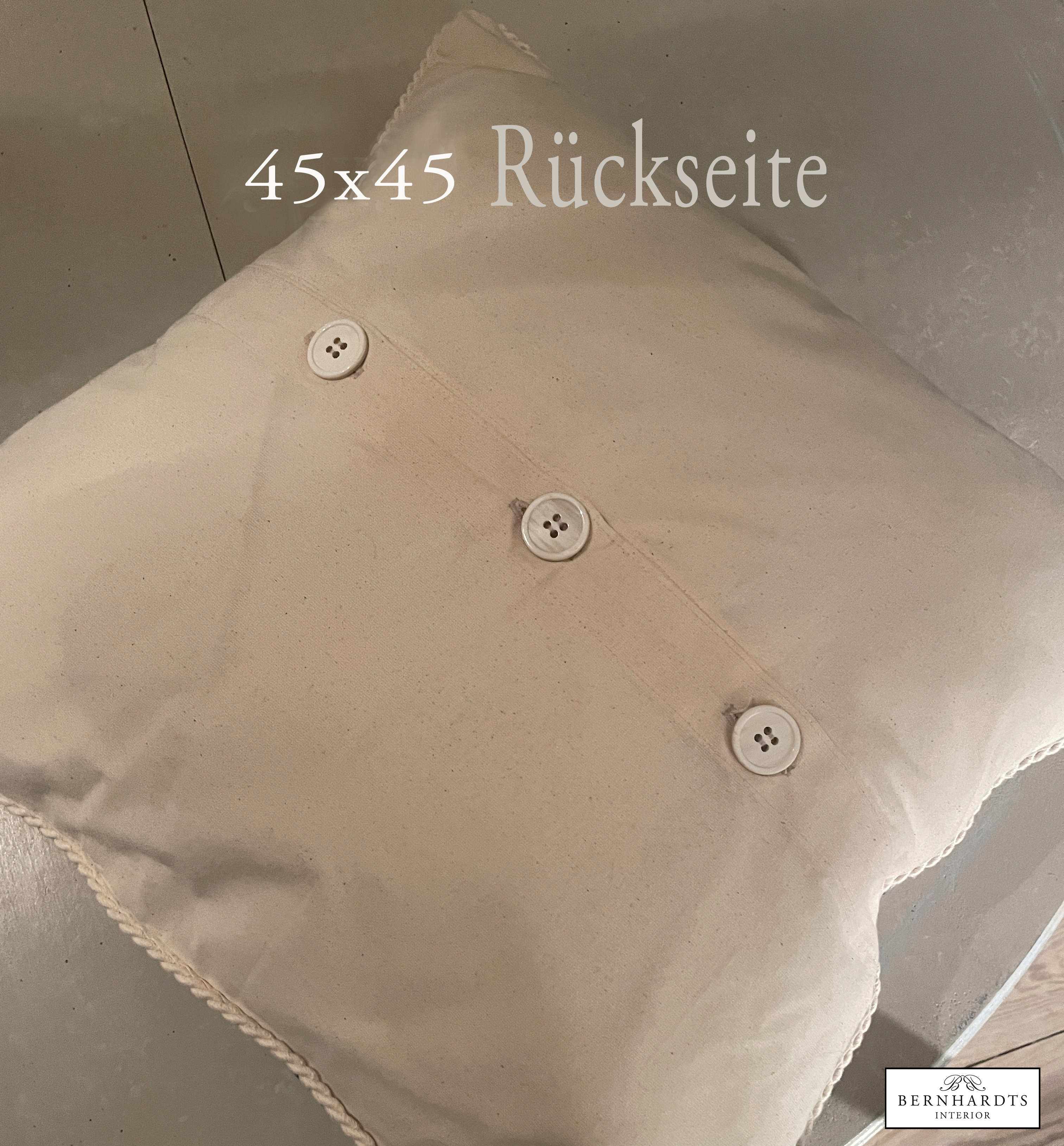 Grosses 45x45cm Toile de Jouy Kissen mit Füllung. Das Kissen wurde in unserem Hause genäht, mit französischem Leinen Stoff Toile de Jouy in Blau. Die Knöpfe sind alt und passend. Vorder und Rückseite bedruckt, Kante mit schönem Kordelband vernäht. Alle Kissen sind handgefertigt und mit Liebe zum Detail gearbeitet. Übergänge sind wunderschön ohne Schnitt. Die Auflage ist begrenzt. Wir fertigen auch auf Wunsch. Einfach anfragen. Mit Liebe zum Handwerk!