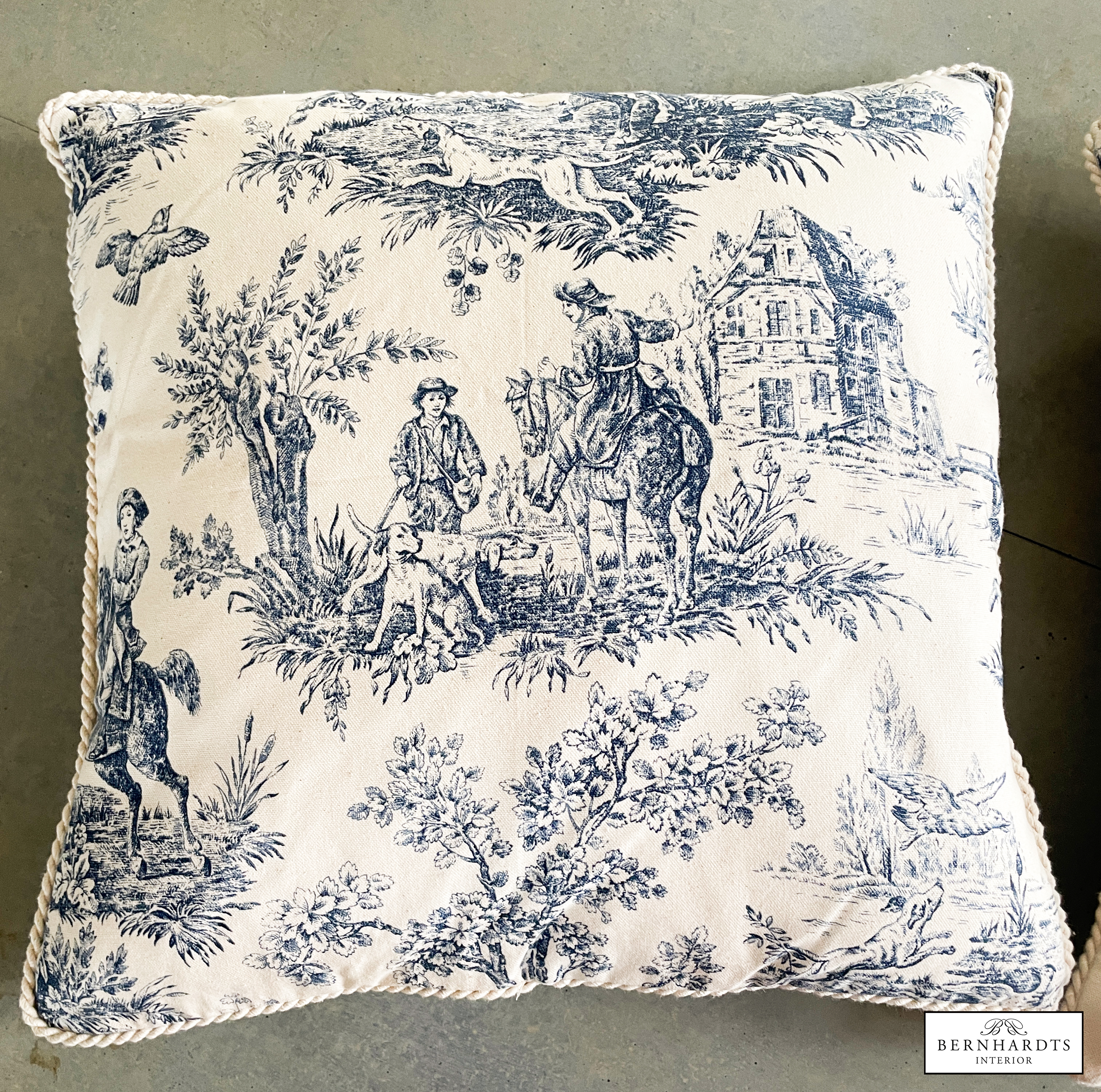 Handgenähte Kissen mit Kordel und Daunen Inlay. Französischer Leinen Stoff, Toile de Jouy. Maße 50x50cm. Können auch auf Wunsch gerfertigt werden.
